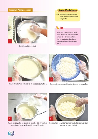 Tanak beras pulut bersama air bersih (450 ml) dalam Gemburkan pulut dengan garpu (sekali sahaja) dan