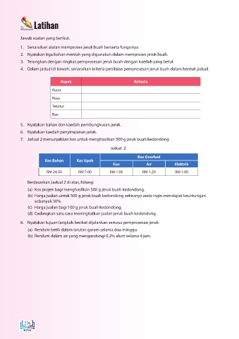 7. Jadual 2 menunjukkan kos untuk menghasilkan 500 g jeruk buah kedondong.