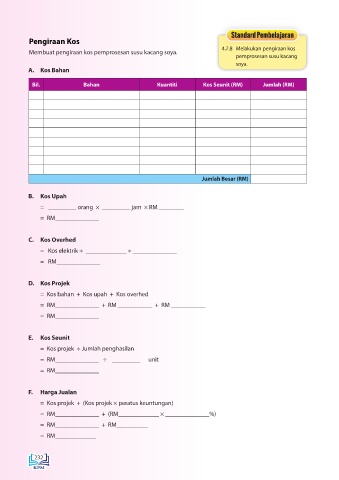 Bil. Bahan Kuantiti Kos Seunit (RM) Jumlah (RM)
