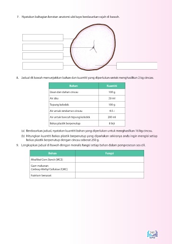 9. Lengkapkan jadual di bawah dengan menulis fungsi setiap bahan dalam pemprosesan sos cili.