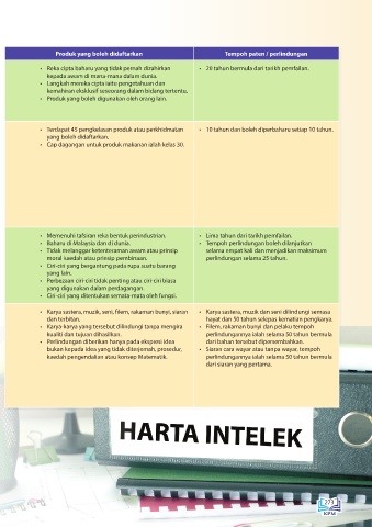 Harta Intelek Fungsi Faedah Produk yang boleh didaftarkan Tempoh paten / perlindungan