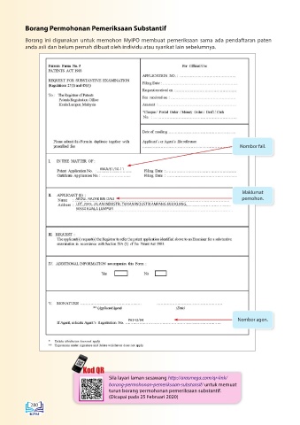 Borang ini digunakan untuk memohon MyIPO membuat pemeriksaan sama ada pendaftaran paten