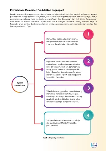 pemprosesan makanan juga melibatkan pendaftaran Cap Dagangan dan Hak Cipta. Permohonan