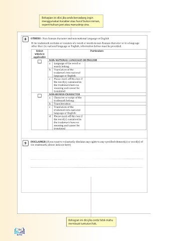 If the trademark contains or consists of a word or words in non-Roman character or in a language