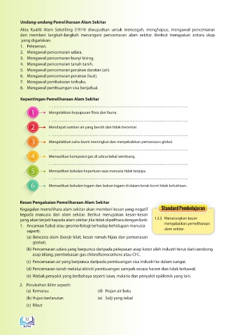 dan memberi langkah-langkah menangani pencemaran alam sekitar. Berikut merupakan antara skop
