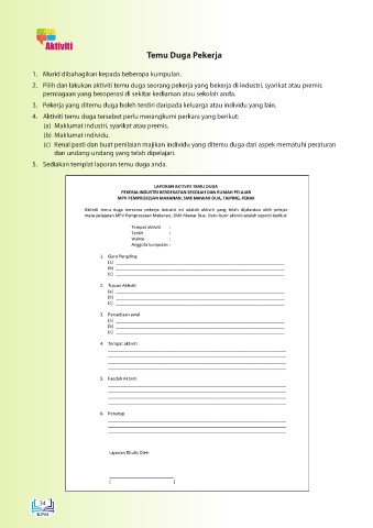 2. Pilih dan lakukan aktiviti temu duga seorang pekerja yang bekerja di industri, syarikat atau premis