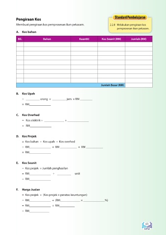 Membuat pengiraan kos pemprosesan ikan pekasam.                    2.2.8  Melakukan pengiraan kos