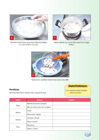 Membuat penilaian bebola ikan yang telah siap. kriteria penilaian.