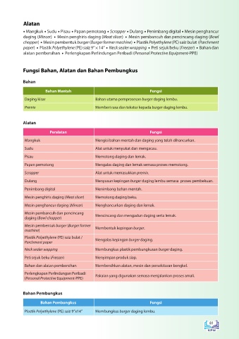 chopper) Mesin pembentuk burger (Burger former machine) Plastik Polyethylene (PE) saiz bulat (Parchment
