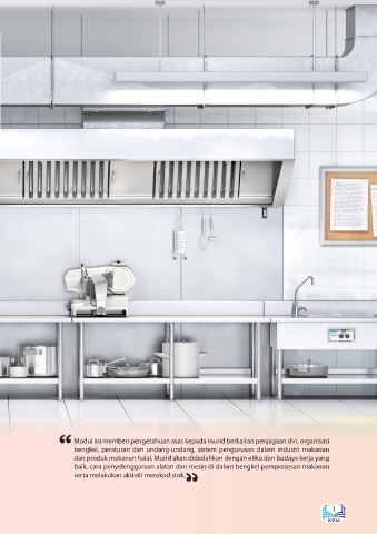 dan produk makanan halal. Murid akan didedahkan dengan etika dan budaya kerja yang