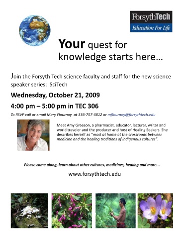 Wednesday, October 21, 2009 Join the Forsyth Tech science faculty and