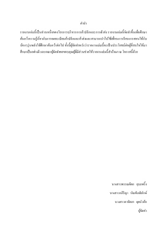 น้องๆรุ่นหลังได้ศึกษาค้นคว้าต่อไป ทั้งนี้ผู้จัดท าหวังว่ารายงานเล่มนี้จะเป็นประโยชน์ต่อผู้ที่สนใจได้มา