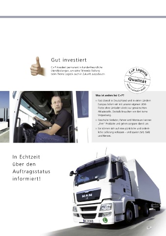 beim Thema Logistik auch in Zukunft auszubauen. C+P Logistik