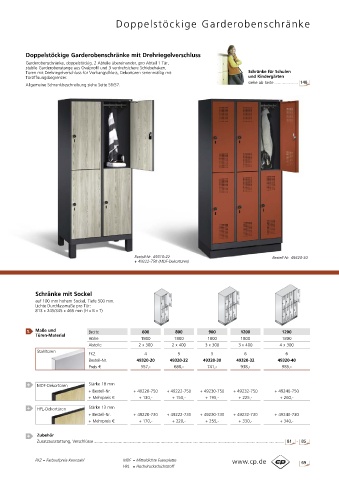 Doppelstöckige Garderobenschränke mit Drehriegelverschluss