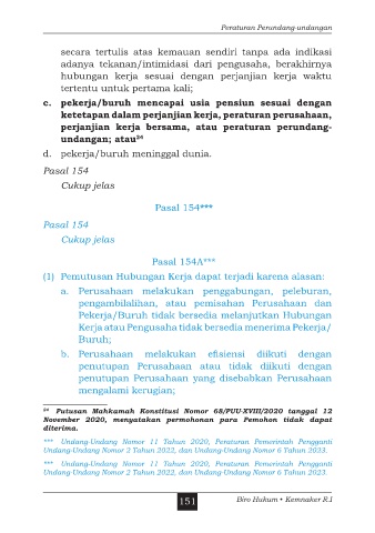 (1) Pemutusan Hubungan Kerja dapat terjadi karena alasan: