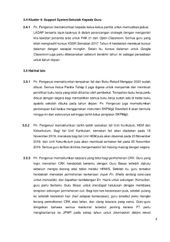 3.5.3 Pn. Pengerusi memaklumkan tatacara yang betul bagi permohonan CRK. Guru yang