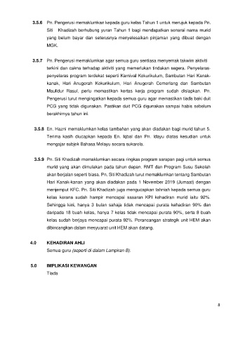 3.5.9 Pn. Siti Khadizah memaklumkan secara ringkas program sarapan pagi untuk semua