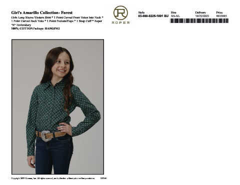 1 Point Curved Back Yoke * 1 Point Pockets/Flaps * 1 Snap Cuff * Roper *,0308002251001*
