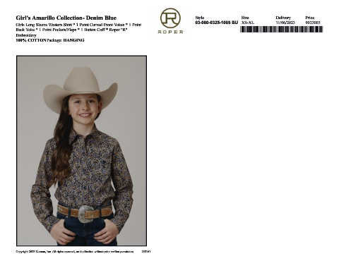 Back Yoke * 1 Point Pockets/Flaps * 1 Button Cuff * Roper "R" *,0308003251005*