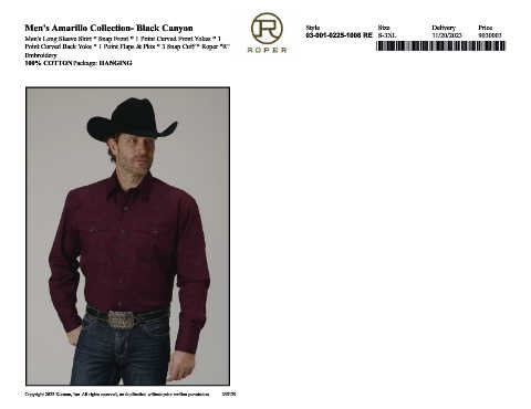Point Curved Back Yoke * 1 Point Flaps & Pkts * 3 Snap Cuff * Roper "R" *,0300102251008*