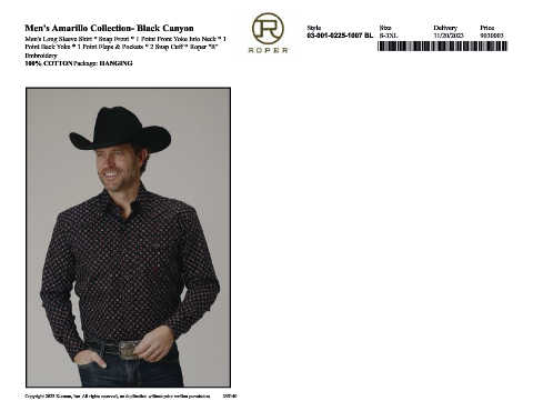 Point Back Yoke * 1 Point Flaps & Pockets * 2 Snap Cuff * Roper "R" *,0300102251007*