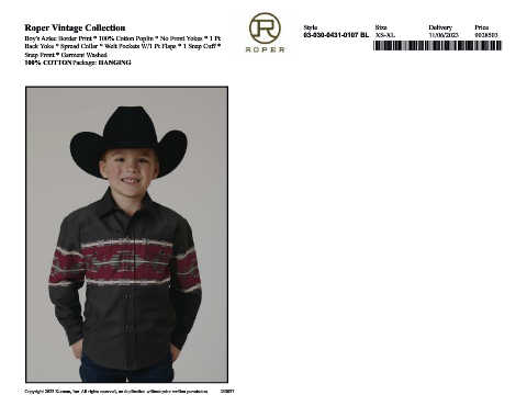 Boy's Aztec Border Print * 100% Cotton Poplin * No Front Yokes * 1 Pt
