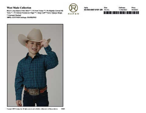 Boy's Long Sleeve Print Shirt * 1 Pt Front Yokes * 1 Pt Slightly Curved Bk