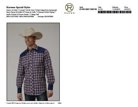 Body Pieced W/Solid C/P Yokes & Cuffs * Trimmed W/Self Piping * *,0100100871062*