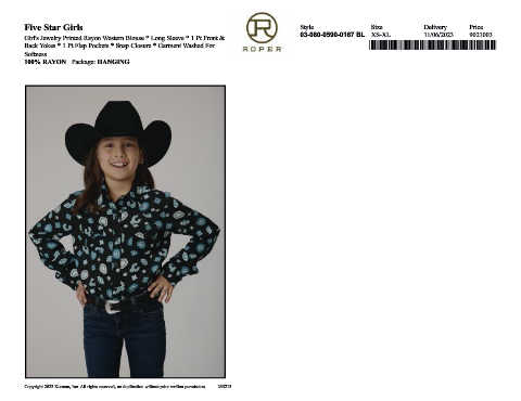 Girl's Jewelry Printed Rayon Western Blouse * Long Sleeve * 1 Pt Front &
