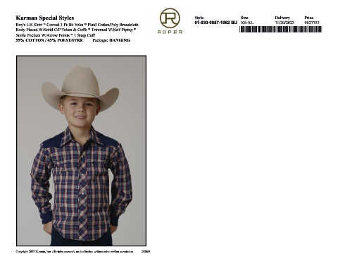 Body Pieced W/Solid C/P Yokes & Cuffs * Trimmed W/Self Piping * *,0103000871062*