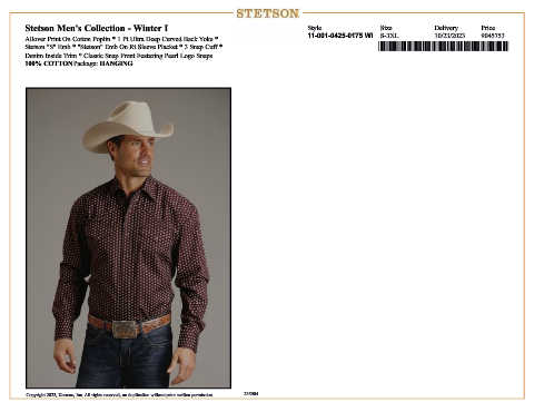 Stetson "S" Emb * "Stetson" Emb On Rt Sleeve Placket * 3 Snap Cuff * *,1100104250175*