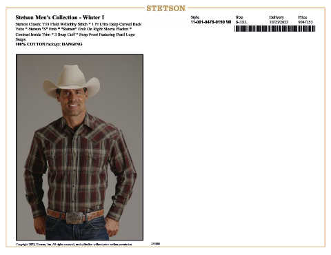 Yoke * Stetson "S" Emb * "Stetson" Emb On Right Sleeve Placket * *,1100104780190*
