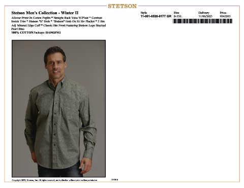 Inside Trim * Stetson "S" Emb * "Stetson" Emb On Rt Slv Placket * 2 Btn *,1100105260177*