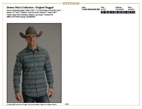 Stetson "S" Emb * "Stetson" Emb On Rt Slv Placket * 3 Snap Cuff * *,1100104760183*