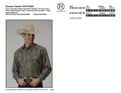 Karman Classics- 55/45 Plaids Style Size Delivery Price