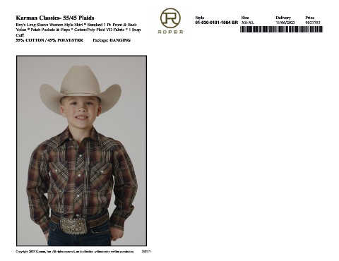 Yokes * Patch Pockets & Flaps * Cotton/Poly Plaid YD Fabric * 1 Snap *,0103001011064*