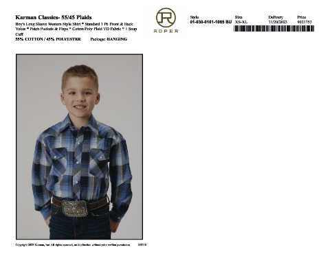 Yokes * Patch Pockets & Flaps * Cotton/Poly Plaid YD Fabric * 1 Snap *,0103001011065*