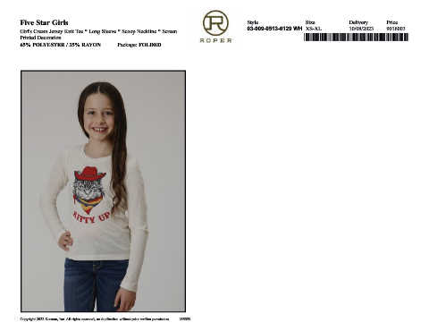 Girl's Cream Jersey Knit Tee * Long Sleeve * Scoop Neckline * Screen