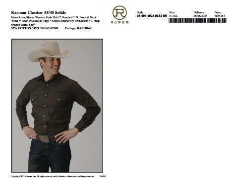 Yokes * Patch Pockets & Flaps * Solid Cotton/Poly Broadcloth * 3 Snap *,0100100250683*