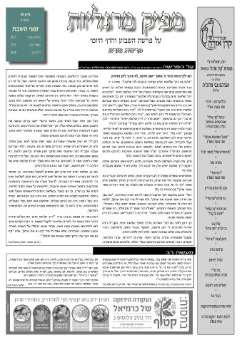 המרא דאתרא הרה"ג רבי אברהם צבי מרגלית שליט"אעל הפרשה מוסדוהתע'לוןקיורןצאאלוארורה'ע"כירמיאל