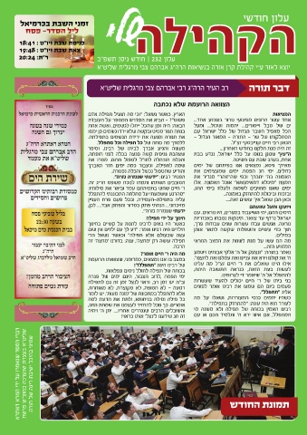 ‫כמסורת רבותינו הקדושים‬                            ‫והודיע שהטפול נכשל והכלה נפטרה‪.‬‬       ‫גדולים‪ ,‬ימי חג הפסח‪ .‬ימים שמעצימים את‬