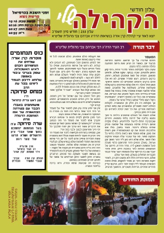 ‫זמני השבת בכרמיאל‬                                                                ‫עלון חודשי‬