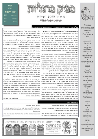 המרא דאתרא הרה"ג רבי אברהם צבי מרגלית שליט"אעל הפרשה מוסדוהתע'לוןקיורןצאאלוארורה'ע"כירמיאל