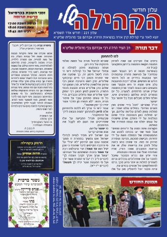 כניסת השבת 17:00 יוצא לאור ע”י קהילת קרן אורה בנשיאות הרה"ג אברהם צבי מרגלית שליט"א