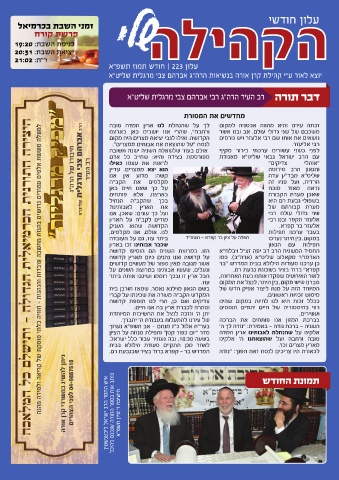 כניסת השבת19:20 : יוצא לאור ע”י קהילת קרן אורה בנשיאות הרה"ג אברהם צבי מרגלית שליט"א