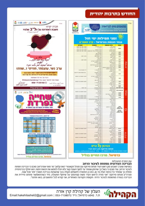 ת.ד 6042 .כרמיאל| נייד Email:hakehilasheli2@gmail.com | 053-7138072