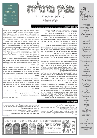 המרא דאתרא הרה"ג רבי אברהם צבי מרגלית שליט"אעל הפרשה מוסדוהתע'לוןקיורןצאאלוארורה'ע"כירמיאל