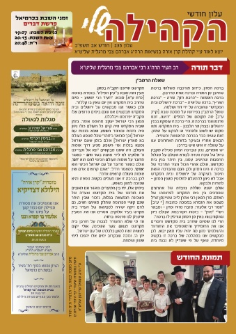 כניסת השבת19:07 : יוצא לאור ע”י קהילת קרן אורה בנשיאות הרה"ג אברהם צבי מרגלית שליט"א