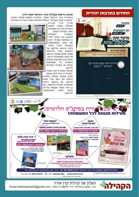 תכנית בריאות בקהילה בעיר כרמיאל יצאה לדרך החודש בתרבות יהודית