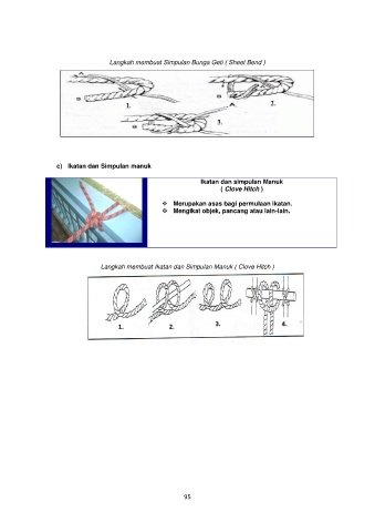 Langkah membuat Ikatan dan Simpulan Manuk ( Clove Hitch )